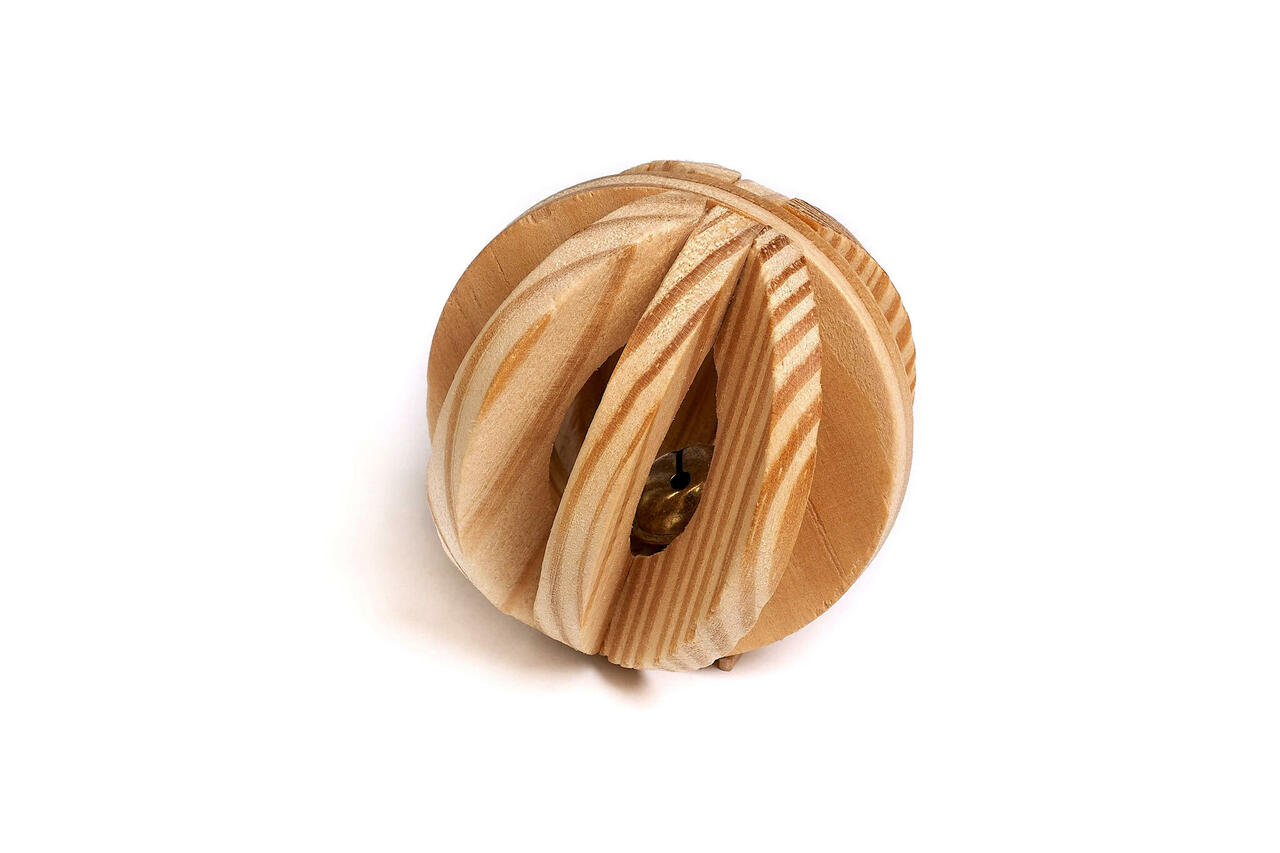Puidust pall, sees metallist kelluke. Mõeldud merisigadele, küülikutele.
