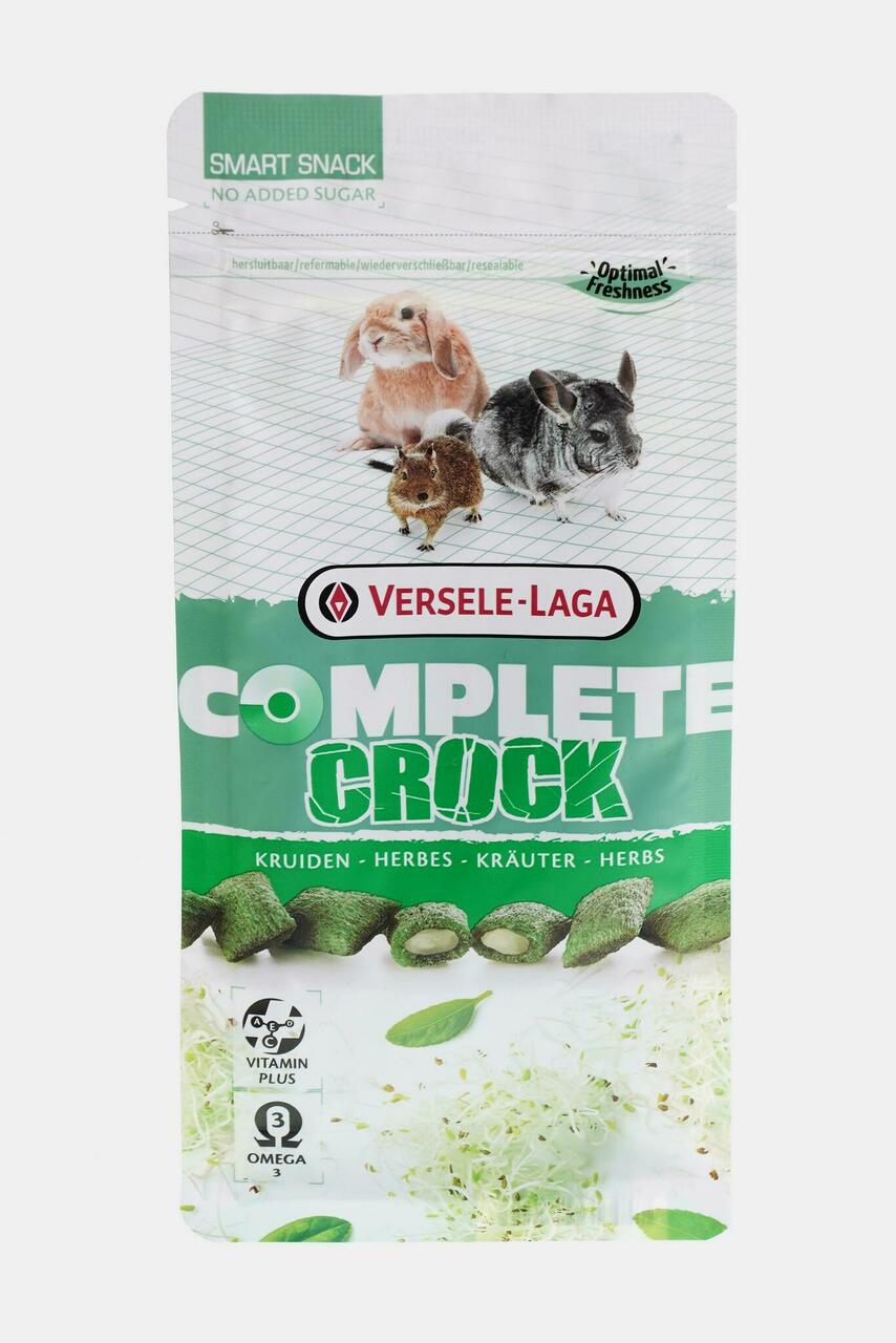 Hästi tasakaalustatud krõmpsuv suupiste pehme ürdi-täidisega. Versele-Laga Complete Crock ürtidega on maitsvad ja tervislikud suupisteid küülikutele ja erinevatele närilistele. Krõbisev koorik stimuleerib närimist ja maheda alfalfa ürdi täidis on rikastatud vitamiinide ja omega 3 rasvhappega. Kergesti seeditav. Crocks ei sisalda lisatud suhkruid ja on seetõttu teie lemmiklooma jaoks ideaalne suupiste.